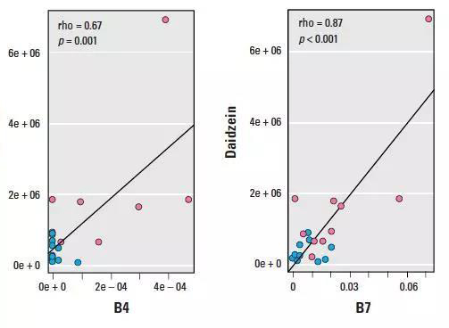 典型微生物/代谢产物散点图分析