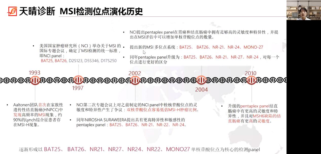 会议开始,来自福建医科大学附属协和医院病理科姚梅宏教授系统介绍了微卫星不稳定检测发展历程以及在临床精准治疗的价值。并指出以BAT25、 BAT26、NR21、NR27、NR24、MONO27单核苷酸位点为核心检测体系的敏感性更高。且使用NMPA批准的试剂盒进行MSI检测是保证检测结果准确性的重要前提。